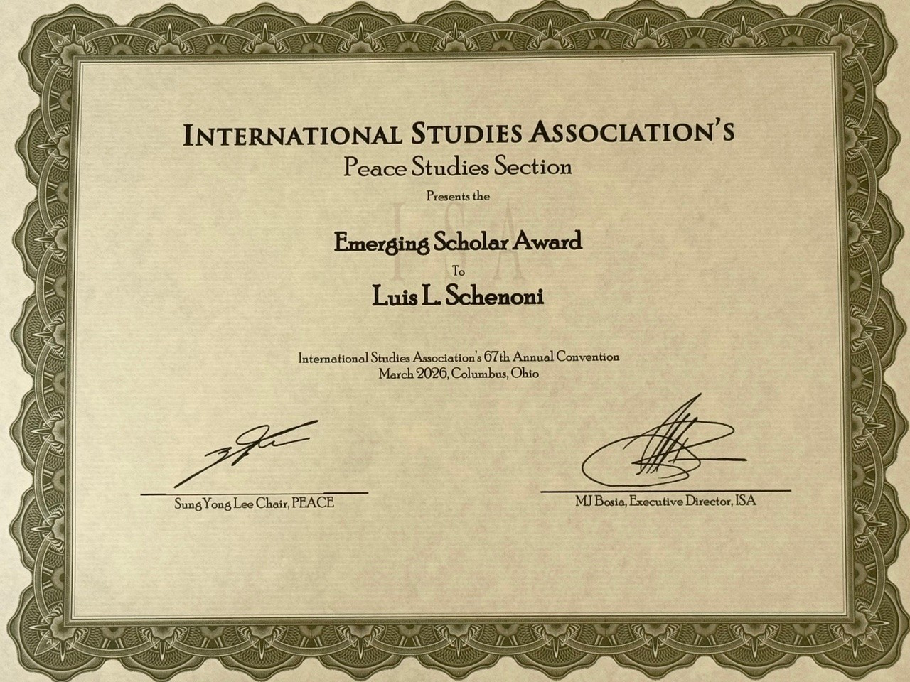 The ISA committee highlighted how, put together, these distinctions highlight not only the intellectual depth of Schenoni’s work but also its wide resonance across disciplines and scholarly communities worldwide. For Schenoni, who also won the Rising Star Award of the ECPR last year, this new recognition by the ISA signals both a milestone and a promise of continued influence in the fields of peace studies, conflict research, and political development.